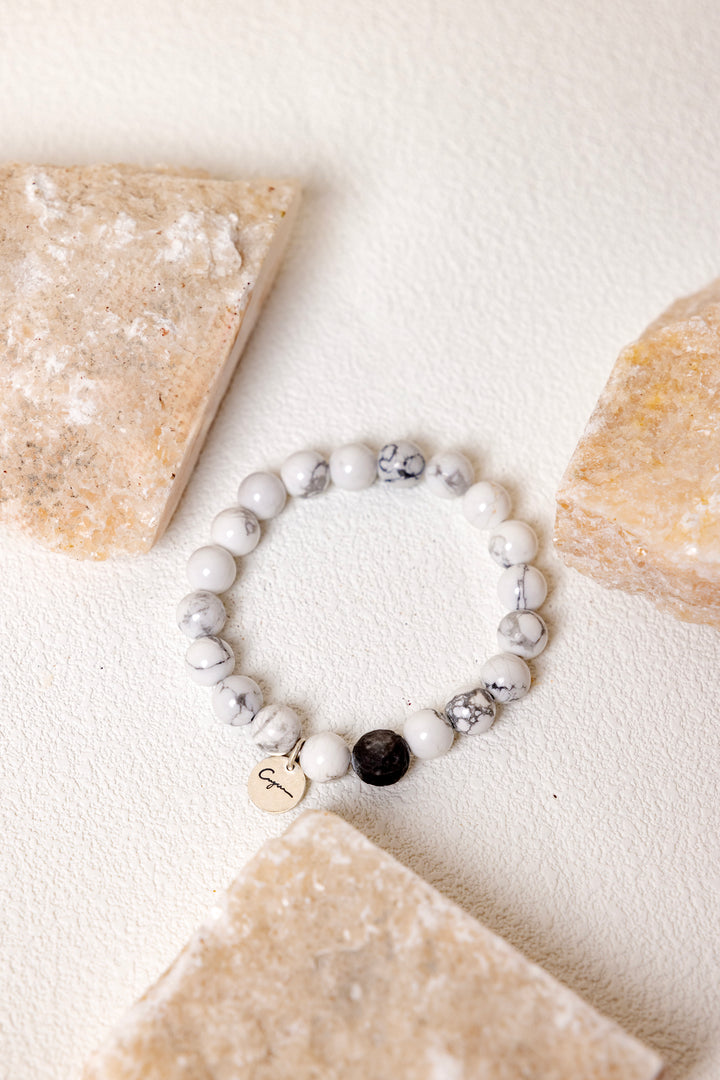 Material: White Turquoise + Black Lava Stone Accents